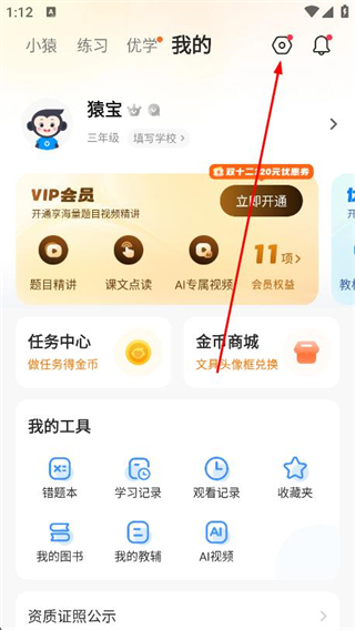 1、打开小猿搜题APP,点击顶部导航栏的我的选项。