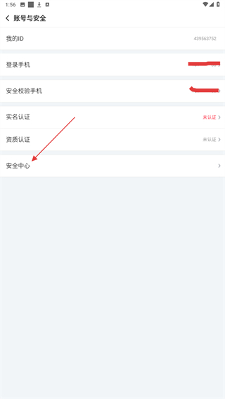 4、进入账号与安全页面中,点击安全中心的选项。