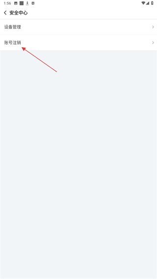 5、进入安全中心页面后,选择并点击账号注销选项。