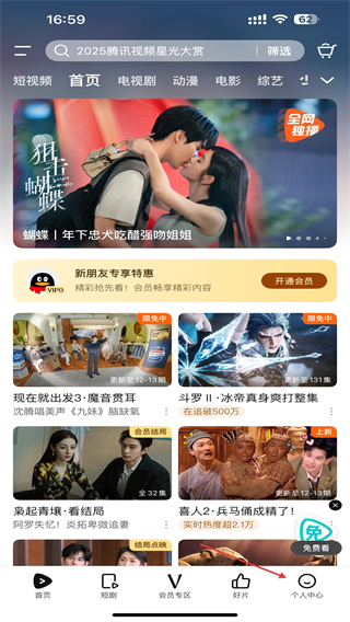 1、打开腾讯视频APP,在首页的「今日最热」「推荐」等板块,找到2025年最新电视剧,点击剧集封面进入播放详情页。