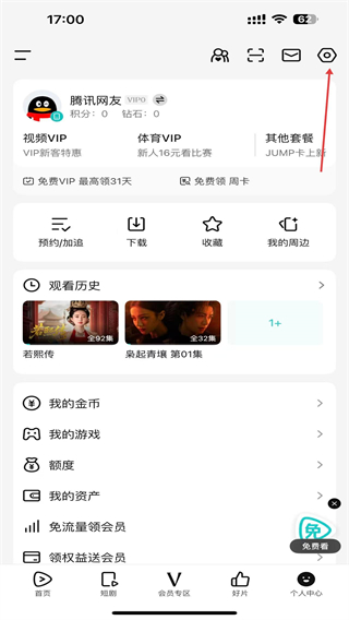 1、打开腾讯视频APP,点击首页右上方的功能图标。