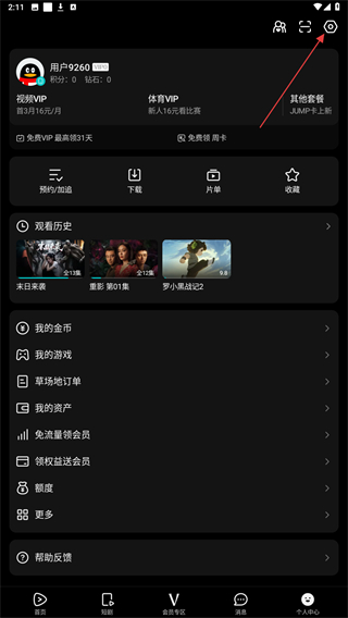 2、进入我的页面内,用户需点击右上角设置的功能按钮。