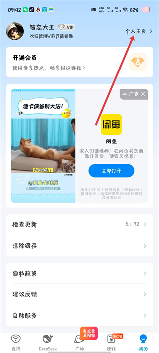1、打开WiFi万能钥匙,点击右上角个人主页选项,进入个人信息界面。