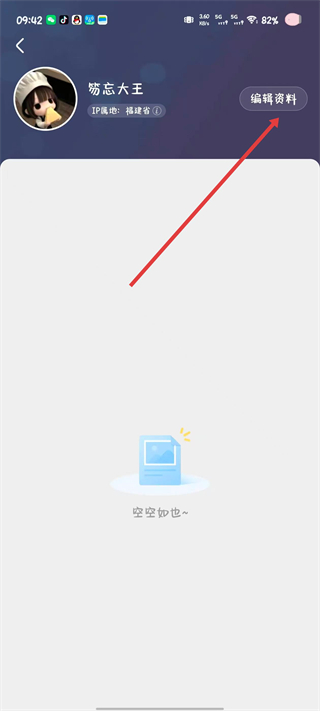2、在个人主页界面,点击右上角编辑资料按钮,进入资料编辑页面。