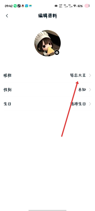 3、在编辑资料页面中,找到昵称选项并点击,进入编辑名字的输入界面。