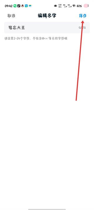 4、在编辑名字界面输入新昵称,确认符合字符要求后,点击右上角保存。