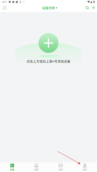 1、启动手机远程监控的APP,进入首页点击右上+的图标。
