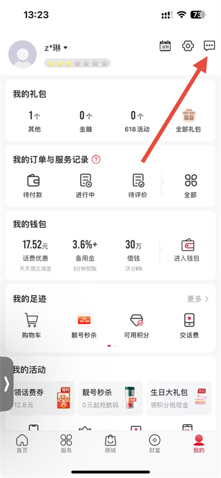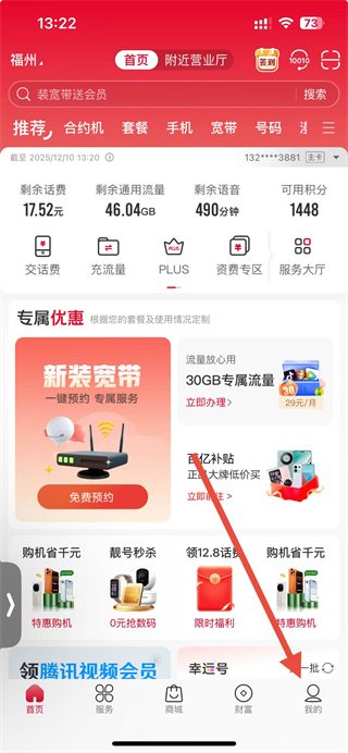 1、在中国联通主界面,点击底部我的选项,进入个人页面。