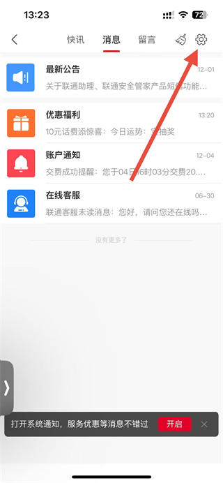 3、在消息相关页面,点击右上角的设置图标,进入消息设置界面。