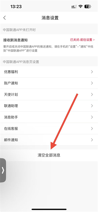 4、在消息设置页面,找到并点击清空全部消息选项,即可完成消息记录的清空操作。
