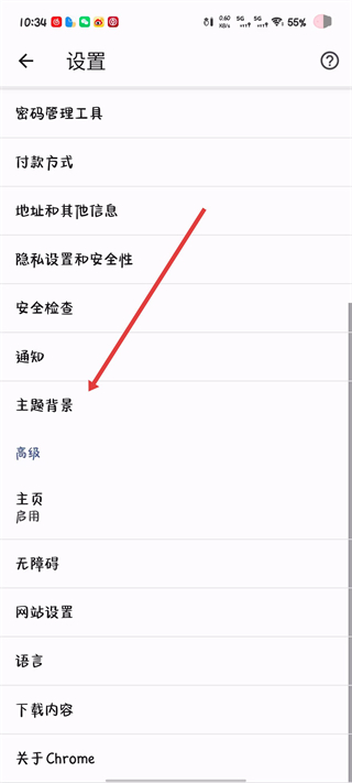 3、在设置界面中找到主题背景选项并点击,进入主题背景的选择设置页面。