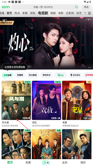 1、打开爱奇艺,点击顶部导航栏的电视剧标签,进入电视剧分类页面。