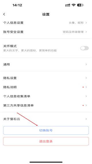 3、在设置页面中,点击最下方切换账号的功能选项。