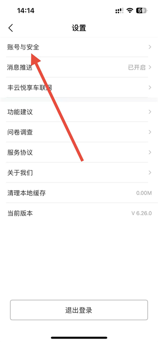 2、在设置界面,点击账号与安全选项,进入账号安全页面。