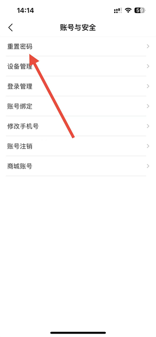 3、在账号安全页面,点击重置密码选项,进入重置密码页面。