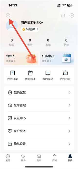 1、进入APP我的页面,在我的爱车区域点击+添加爱车,启动车辆绑定操作流程。