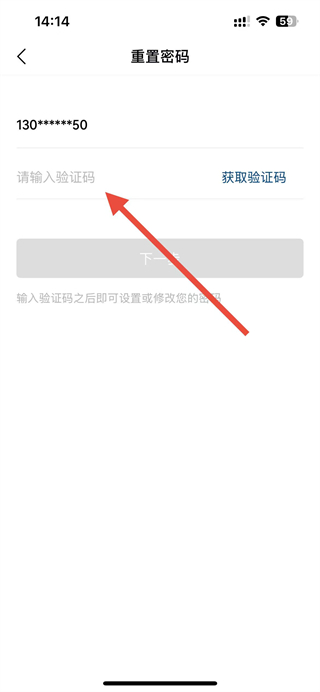 4、在重置密码页面,点击获取验证码,填写收到的短信验证码后,按提示设置新的登录密码即可。