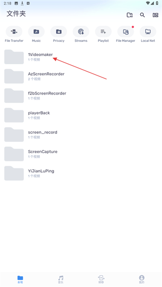 1、打开MX播放器,在本地页面的文件夹列表中,点击要播放视频所在的文件夹。