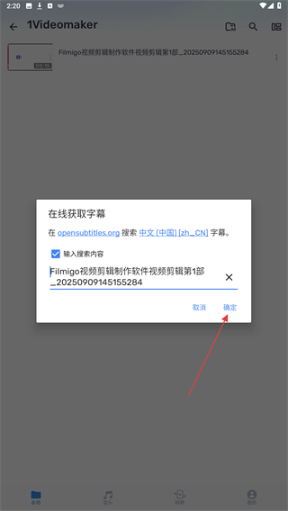 4、当页面弹出在线获取字幕的页面,点击确定的按钮即可。