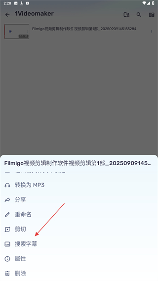 3、当下方弹出的菜单栏中,点击搜索字幕的按钮。