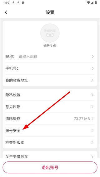 2、在设置界面,点击账号安全选项,进入账号安全相关页面。