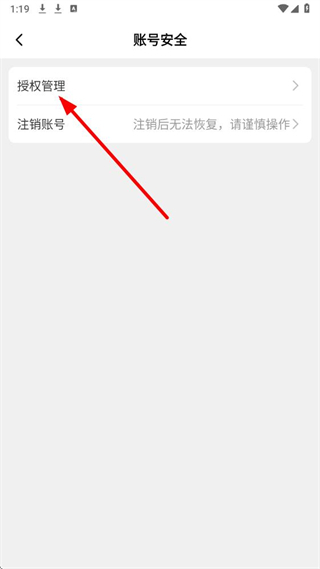 3、在账号安全页面,点击授权管理选项,进入授权管理页面。