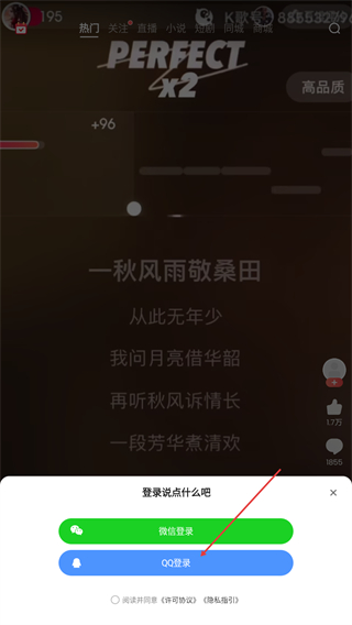 2、在下方弹出的登录方式中,点击QQ登录的按钮。