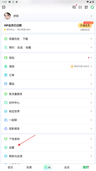 2、进入我的页面内,点击下方设置的按钮。