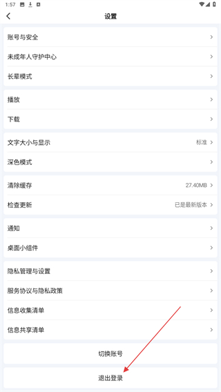 3、在设置的界面内,点击下方退出登录的按钮。