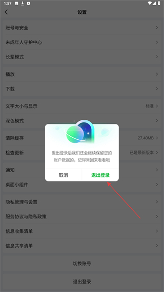 4、显示提示后,点击退出登录的按钮即可。