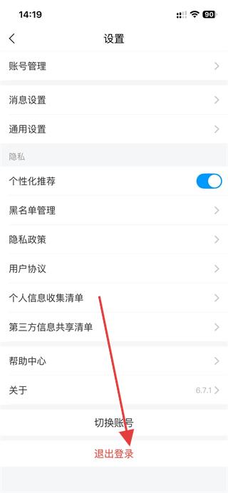 3、在设置页面中,找到并点击底部的退出登录选项。