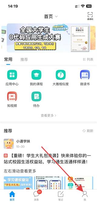 1、打开超星学习通App,点击底部导航栏中的我进入个人界面。