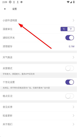 3、在设置页面中,找到小部件透明度选项并点击,进入透明度调整界面。
