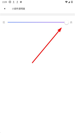 4、在该界面拖动滑块,即可调整桌面小部件的透明度,设置完成后自动生效。