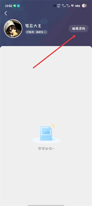 2、在个人主页界面中,找到右侧编辑资料按钮,点击进入资料编辑页面。