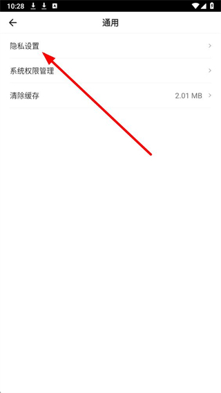 3、在通用界面,点击隐私设置选项,进入隐私设置页面。