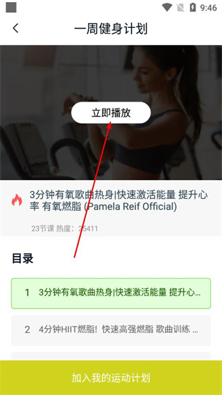 3、进入对应计划的详情页后,点击立即播放,即可开始观看训练课程。