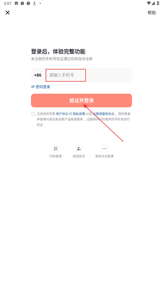 2、在登录界面填写你的手机号码,点击验证码登录按钮,获取短信验证码。