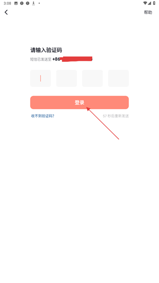 3、收到验证码后,在输入框中填写验证码,再点击登录按钮,即可完成登录。