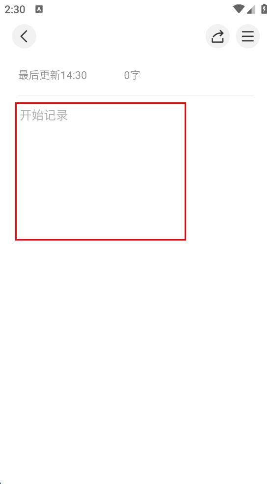 3、在新便签编辑页面,点击“开始记录”区域,即可输入想要记录的内容。