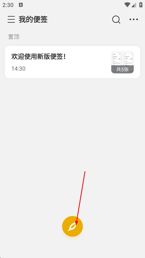 2、进入“我的便签”页面后,点击页面下方黄色带笔形图标的按钮,创建新便签。