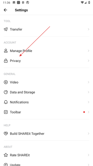 3、在Settings页面的ACCOUNT分类下,找到Privacy选项并点击,进入隐私设置页面。