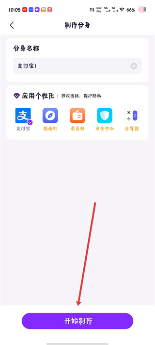 3、进入制作分身页面,可设置分身名称和选择应用图标样式,确认后点击开始制作按钮。