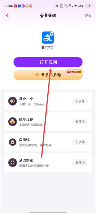 4、制作完成后进入分身管理页面,点击打开应用按钮即可启动该应用的分身版本使用。