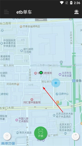 2、在地图上查看绿色标记点,这些标记对应的就是可使用的自行车位置。
