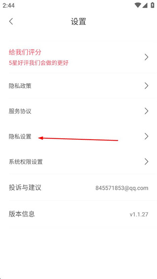 3、在设置页面找到隐私设置选项,点击该选项进入隐私相关的操作界面。