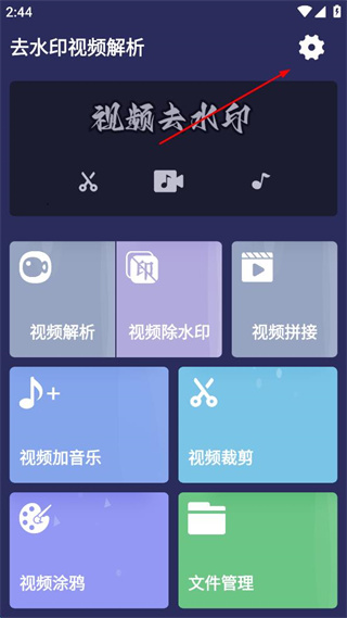 2、在主界面查看各类视频处理功能,点击右上角的设置图标进入设置页面。