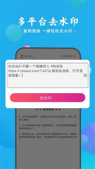 综合了快速下载各网络平台短视频、视频解析无水印提取祛除水印、一键去水印、水印移除、短视频去水印、视频编辑等众多视频编辑功能的工具软件。