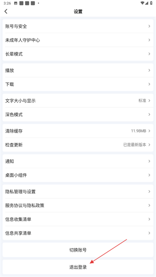3、在设置页面的底部,点击退出登录的选项,弹出退出确认窗口。