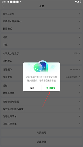 4、在弹出的窗口中,点击退出登录的按钮,即可完成账号的退出操作。